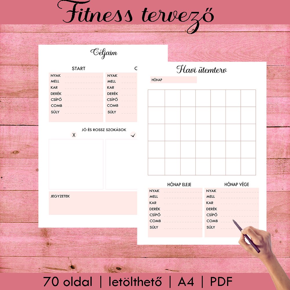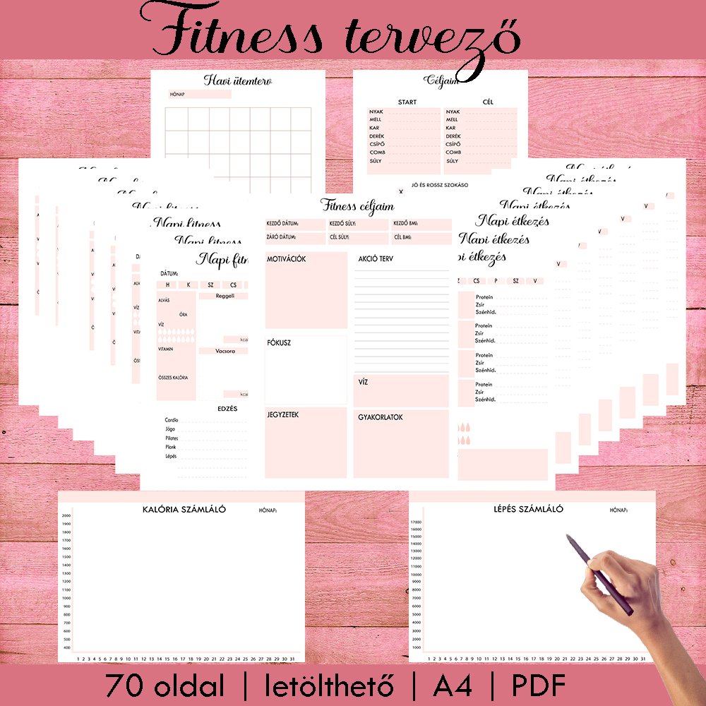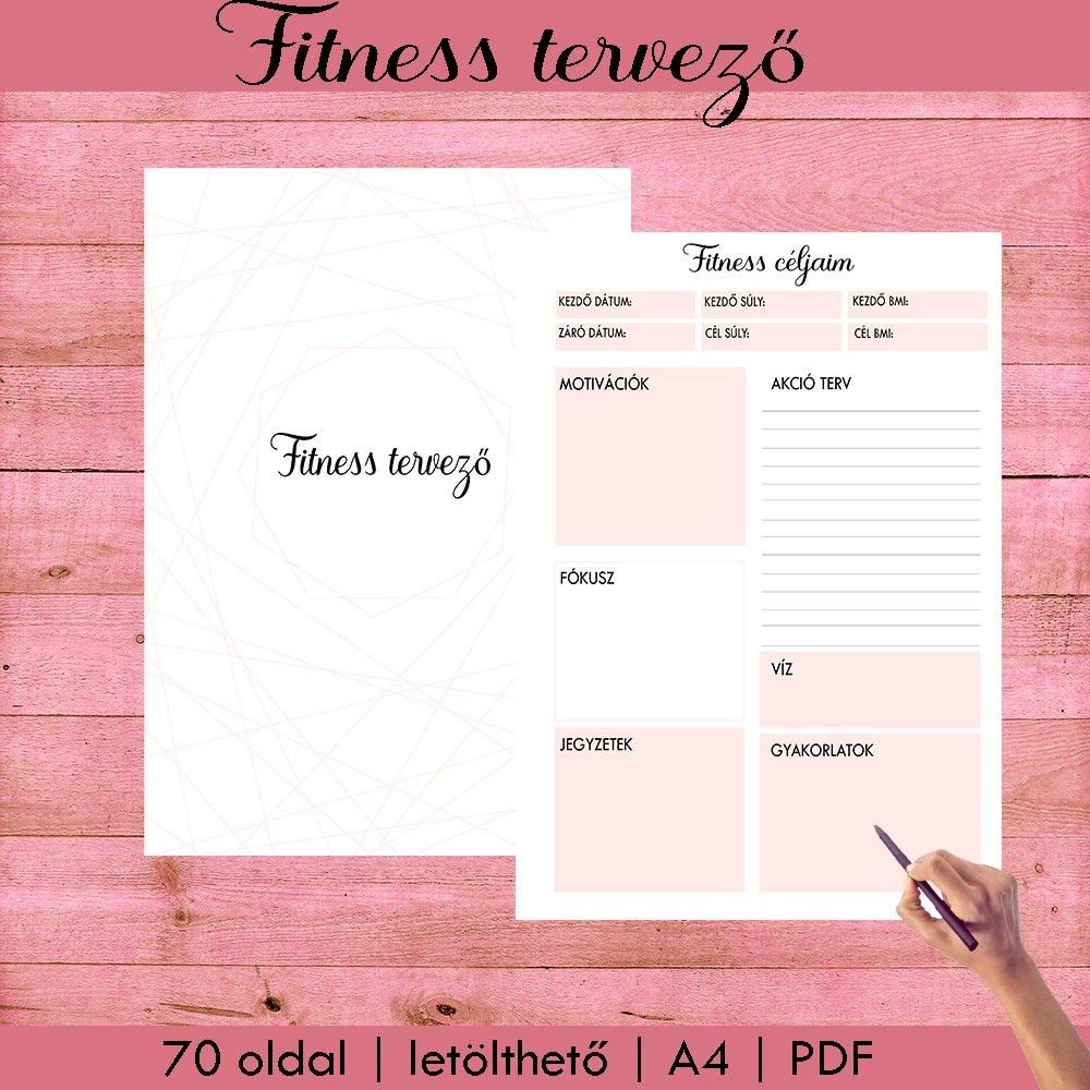 Szeretnél tudatosabban odafigyelni a mozgásra, az étkezésre és a fejlődésedre? Ez a Fitness tervező egy letisztult, nőies és praktikus digitális eszköz, amely segít rendszerezni a céljaidat és végigkísér az életmódváltás útján.